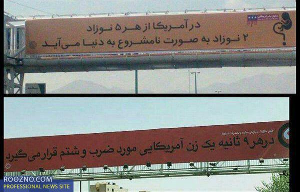 روزنو :نصب بیلبوردهایی در سطح شهر این روزها بحثهای فراوانی را بین مردم و در فضای مجازی ایجاد کرده است. به اتوبان که میروید با بیلبوردهایی با این مضمون مواجه میشوید: «آیا میدانستید در امریکا از هر 5 نوزاد، 2 نوزاد نامشروعند»، «آیا میدانستید در امریکا در هر 9 ثانیه یک زن مورد ضرب و شتم قرار میگیرد» و... اینها بخشی از شعارهایی است که شهرداری در طرحی با نام «حقوق بشر امریکایی» روی بنرهایی در سطح شهر تهران نصب کرده و واکنشهای زیادی را به همراه داشته است.