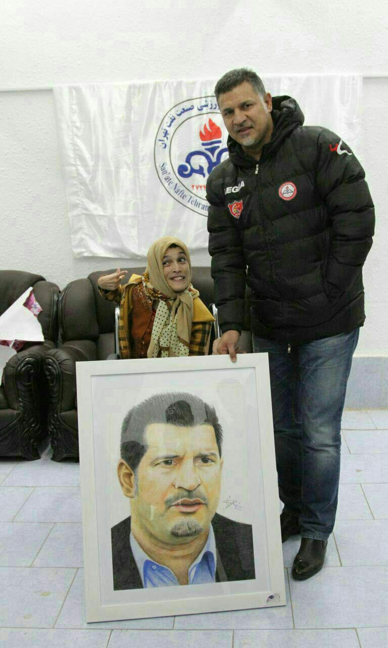 فاطمه دختر معلولی که چندی پیش تصویر دایی را نقاشی کرده بود در تمرین نفت با استقبال گرم علی دایی مواجه شد.