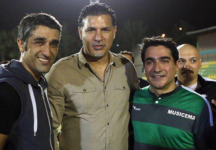 تصویری از علی دایی و همایون شجریان در کنار پژمان جمشیدی