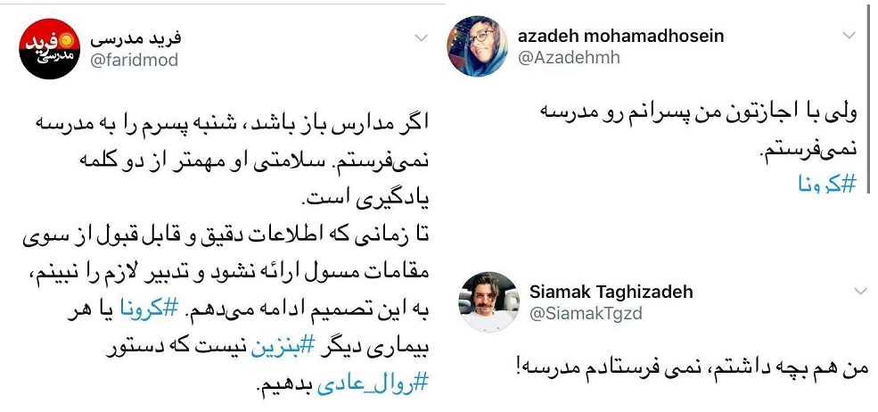 ایجاد کمپین مجازی مردم علیه بازگشایی مدارس +عکس