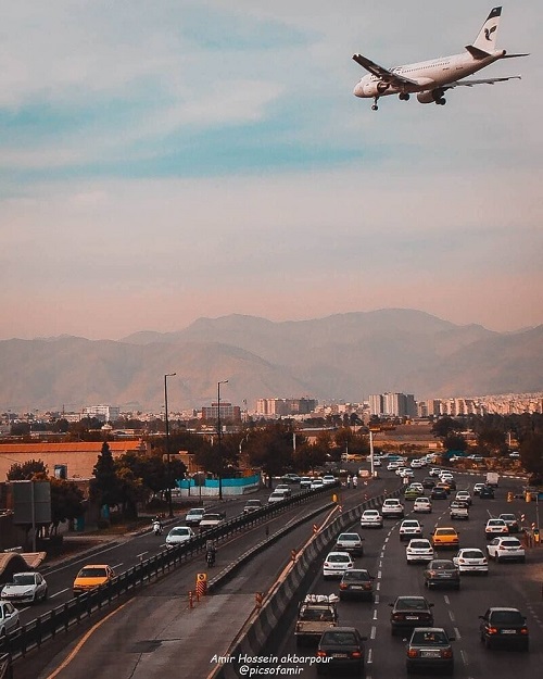 عبور هواپیما از چند متریِ اتوبان مرکز تهران +عکس