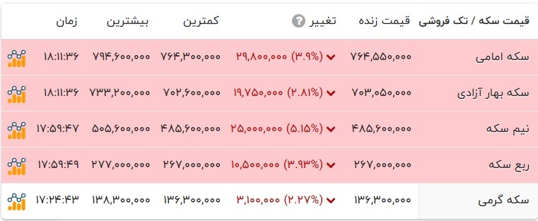 قیمت طلا و انواع سکه را در جدول زیر مشاهده میکنید.