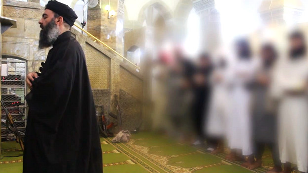 یک مقام مطلع عراقی در گفت‌وگو با دفتر بی‌بی‌سی در بغداد تایید کرده است که مردی که با ریش انبوه و قبای سیاه در این ویدیو دیده می شود، ابوبکر البغدادی است.